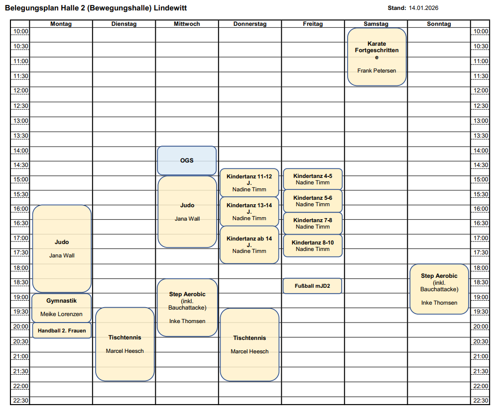 Sporthalle, Halle 2 (Bewegungshalle), Sportplatz